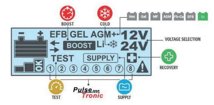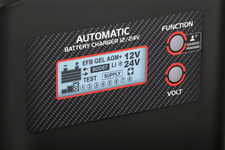 Универсальное зарядное устройство PULSE 50 EVO с множеством полезных функций для обслуживания WET, GEL, AGM, MF, Pb-Ca, EFB, Li аккумуляторов с напряжением 12В и 24В. Оборудование обеспечит безопасный заряд и поддержание заряда аккумулятора, в том числе в сложных условиях окружающей среды (при низкой температуре). Проверит напряжение на контактах и пусковую способность (ССА) аккумулятора, функционирование генератора транспортного средства. Восстановит глубоко разряженный аккумулятор, подверженный сульфатации. Это надежный и стабильный источник питания при замене аккумулятора, при проведении диагностики, обеспечит поддержание в исправном состоянии аккумулятора транспортного средства в выставочных залах. Оперативное отображение всех параметров работы аппарата на ЖК-экране позволяет контролировать процесс обслуживания аккумулятора даже при плохом освещении. Предусмотрена многоуровневая защита аппарата: защита от перегрузки, короткого замыкания, неправильной полярности. Устройство сообщает о сбоях и защищает аккумулятор от неправильного подключения.